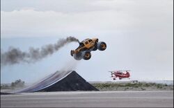 BroDozer is a diesel-powered monster truck owned by DieselSellerz and FELD Motorsports. The BKT tires on the Diesel BroDozer are agriculture products 66-inch by 40-plus inches. Left and Right Precision Steering.