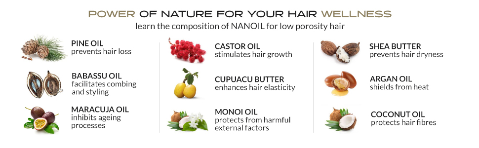 Amazon Com Nanoil Low Porosity Control Hair Repair Oil To Moisturize And Prevent Dryness And Frizz Contains 9 Natural Oils 100 Milliliters Beauty Personal Care